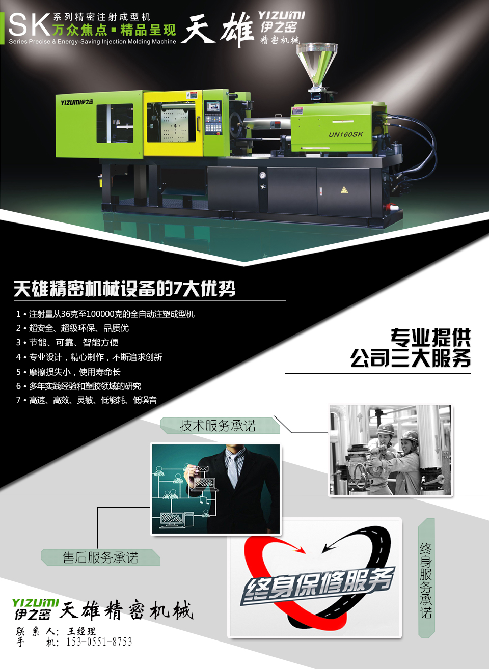 合肥天雄精密機械設備有限公司,專業銷售各種注塑機及注塑機周邊專用配套設備,為客戶提供專業的技術指導和整廠生產策劃,以銷售各種系列射膠成型機已有多年經驗。我公司銷售注塑成型機全套機械設備,注塑機,注塑輔機(干燥機,上料機,粉碎機,模溫機,冷水機,冷卻塔,色母機混色機,振動篩等),各種配件,耗材等,為客戶提供一整套服務,為客戶節省維修成本。我公司廣泛的信息來源,隨時給客戶提供前沿注塑信息。   通過公司全體員工的努力,我公司銷售的注塑機械在整個行業享有盛譽,更在外省市場不斷創造輝煌的業績。   公司根據用戶的需求采用針對性的產品開發更新,為提供更...